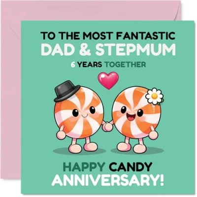 Playful 6th Anniversary Card for Stepmum & Dad Sweeten Their Day Cute Candy Couple Illustration Bursting with Cheerful Colours 145mm Square, Envelope Included