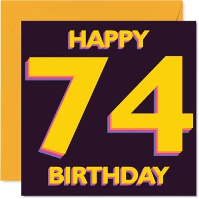 Vibrant yellow numbers pop against the deep purple background for a cheerful birthday surprise. Instantly puts the big 74 in the spotlight and brings a festive feel to the celebration Features a bold, contemporary design with large numerals and crisp 'HAPPY 74 BIRTHDAY' text. Modern yet classic, it's the perfect way to make the milestone feel extra significant Printed on quality gloss single sided board with an uncoated inside. No smudging when writing inside, so your personal message stays neat and clear Blank inside for your own message and comes complete with an envelope, making it easy to send or hand-deliver. The 145mm Square format is convenient to display or post Designed and printed in the UK using recyclable, FSC-certified. A card you can feel good about sending and one that's sure to be remembered