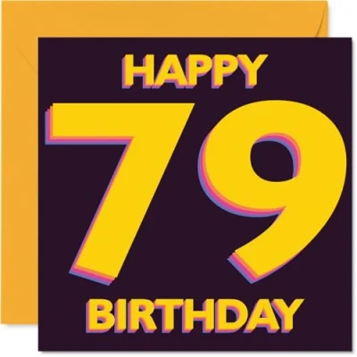 Playful 79th Birthday Card Cheers to 79 Bold Number Design in Vibrant Yellow and Purple Perfect for Marking This Milestone Year 145mm Square, Envelope Included