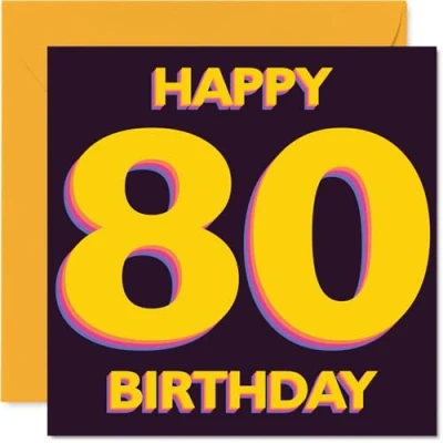 Playful 80th Birthday Card Bold and Bright Vibes Standout 'HAPPY 80 BIRTHDAY' in Yellow Purple A Vibrant Milestone Keepsake 145mm Square, Envelope Included