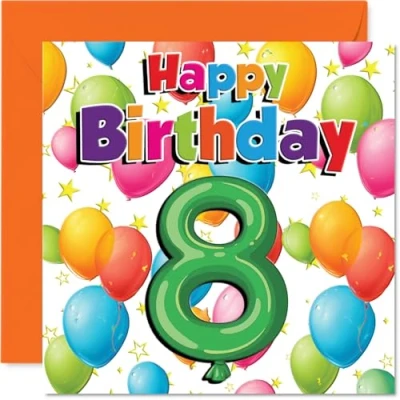 Brings the party spirit with a bright mix of balloons and stars, making any eight-year-old's birthday feel extra special and full of excitement Features a lively multicolour motif with orange and green highlights, perfect for standing out on the gift table and adding a pop of fun. Recyclable; printed in UK for a considerate choice Printed on gloss single sided board with an uncoated inside for smooth writing. No smudging when writing inside, so your personal message stays crisp Inside message: Have a great day. Comes with a quality envelope, ready to be sent or handed over in person. The 145mm Square format is convenient to display or post Made with FSC certified and fully recyclable materials, designed and printed in the UK for a card you can feel good about giving. Ideal for a mum or dad celebrating a milestone birthday