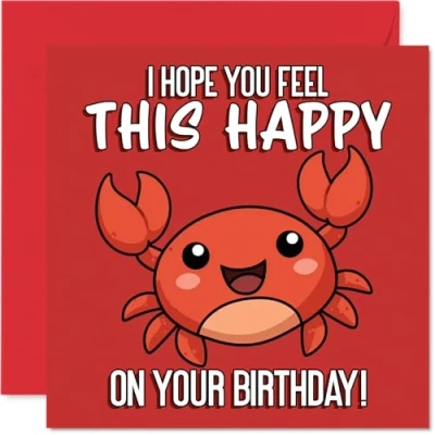 Playful Birthday Card Bursting with Cheer Cartoon Crab on Vibrant Red Backdrop Guaranteed to Lift the Mood 145mm Square, Envelope Included
