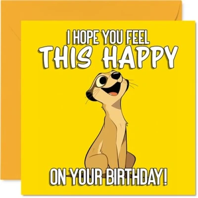 Packed with infectious happiness, this card features a beaming cartoon animal that's absolutely delighted-guaranteed to raise anyone's spirits on their birthday The lively yellow background and fun animal design make it a standout choice, perfect for brightening up the big day and adding a playful touch to any celebration Printed in the UK on a gloss single sided board with uncoated inside. No smudging when writing inside, so your own message stays neat and personal Blank inside, allowing you to pen a heartfelt message, and comes complete with an envelope for easy gifting. The 145mm Square format is convenient to display or post Created with quality and the environment in mind-fully recyclable and crafted from FSC-certified for a card you can feel good about