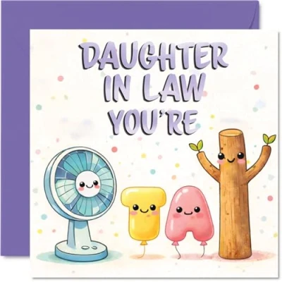 Cheerful and light-hearted, this card delivers a warm smile with its playful cartoon characters and vibrant purple hues. Birthday card for Daughter in Law with a light-hearted design style Features a charming illustration of adorable characters, bringing a sense of joy and whimsy to her special moment. Recyclable and printed in UK for a considerate choice Printed on quality gloss single sided board, uncoated inside for easy writing. No smudging when writing inside. Printed on 360 micron stock for a confident, premium feel Blank inside, so you can personalise your own heartfelt or cheeky message. Envelope included for hassle-free gifting. The 145mm Square format is convenient to display or post Designed and printed in the UK with recyclable materials and FSC-certified -feel good about sending a thoughtful card. A thoughtful choice that helps you send smiles and warm wishes