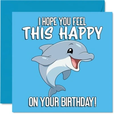 Playful Birthday Card Full of Cheer Smiling Dolphin Illustration in Vibrant Blue Sure to Bring a Wave Happiness 145mm Square, Envelope Included