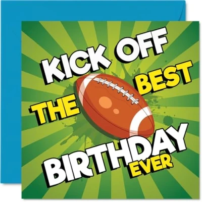 Playful Birthday Card Kick off a Brilliant Vibrant Football Design with Bold Celebratory Text 145mm Square, Envelope Included
