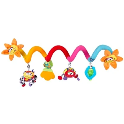 Colourful and soft pram spiral with cute dangly bugs and leaves, Promotion of fine motor skills, Sensory training of seeing, hearing and touching, Suitable from 0 months Varied distraction on the go: Bright colours to admire, Without strings and straps, To be wrapped around the pram's safety bar, Cuddly plush bugs to grip and touch, Ideal for small hands Exciting rustling, rattling and squeaking noises when moving, Various materials and surface structures, With teething ring to soothe sore gums Made of sturdy and durable material, Easy to clean: Washable with a damp cloth, Not suitable for use in water Contents: 1x Playgro Twirly Whirly Bugs Pram Spiral, Dimensions (LxWxH): 8,5 x 2,4 x 33,5 cm, Material: 80 % Polyester, 2 % Polycotton, 13 % EVA, 2 % Rubber, 2 % Cellophan, Colour: Multicoloured, Art.No.: 40194, Manufacturer: Rotho Babydesign