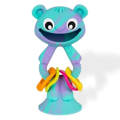 Heat resistant silicone makes cleaning hassle-free Suction cup for high chair and floor play Rattle rings for auditory stimulation Easy for little hands to grasp for sensory exploration Flexible character helps build dexterity and Soft silicone to soothe sore gums 100% Food Grade safe silicone, Manufacturer: Playgro