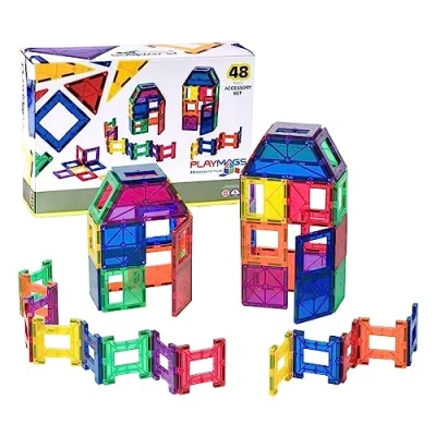 Includes 6 differently shaped blocks Bright assorted colors Blocks easily connect Winner of Dr Toy award National parenting seal of approval 48 PIECES OF FUN: This Playmags 48 piece set lets kids build, play & learn for hours of educational entertainment; recommended for ages 3+ OTHER MAGNETIC TILES: These Playmags tiles will work with any magnetic tile building toys. This can still be your first Playmags set. EDUCATIONAL TOY: Engineering toys stimulate problem solving, motor skills & shape recognition; Perfect for Preschool Games & Group Activities. BOUNDLESS BUILDING: Playmags 48 piece set includes 6 different shapes in vivid colors that can combine to unlimited imaginations, Manufacturer: Playmags