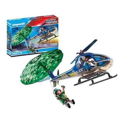 Holiday fun with the whole family: PLAYMOBIL beach snack bar with a saleswoman, a tourist and other accessories for detailed re-enactments This mission calls for the police helicopter: PLAYMOBIL parachute chase with policeman, criminal and accessories for detailed re-enactments Helicopter with rotatable rotors, space for 2 adult figures, skids outside function as standing surface, 1 functional parachute for 1 figure Playset for children ages 4+: Fits ideally in children's hands due to age-appropriate size pieces, Easy to hold thanks to its rounded edges Everyday use: instructions for assembly (with parents), High quality and robust design, To clean the parts (not including stickers), place pieces under running water containing no chemical agents Contents: 1x PLAYMOBIL City Action Police Parachute Search, 19-piece play figure set with instructions: 1 helicopter, 1 parachute, 2 figures, 15 accessories, Material: plastic, LxDxH helicopter: 31x11.5x13.5 cm / diameter parachute: 48 cm, Weight: 214 g, 70569, Manufacturer: PLAYMOBIL®