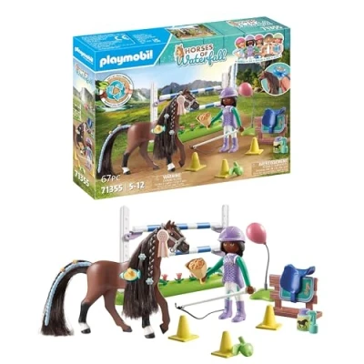 Playmobil 71355 Horses of Waterfall Jumping Arena with Zoe and Blaze, training for the championship rewards, fun imaginative role play, sustainable play sets suitable children ages 5+