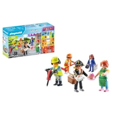 Your City, Your Stories: Bring the colourful city to life with My Figures City Life from PLAYMOBIL. Create charming characters, whether it is the lovely postwoman, the friendly doughnut seller or the hard-working street worker Variety of Accessories for Endless Fun: With items like a laptop, letters, jackhammer and more, there's something for every character in the city. With these, the characters can explore the city and experience exciting adventures Toy for children ages 5+: Fits perfectly in children's hands due to age-appropriate size pieces, easy to hold thanks to its rounded edges Everyday use: instructions for assembly (with parents), High quality and robust design, To clean the parts (not including stickers), place pieces under running water containing no chemical agents Contents: 58 pieces with instructions: 5 figures, 53 additional accessories; materials made from plastic; LxWxH: Can be set up individually, weight: 84 g, 71402, Manufacturer: Playmobil