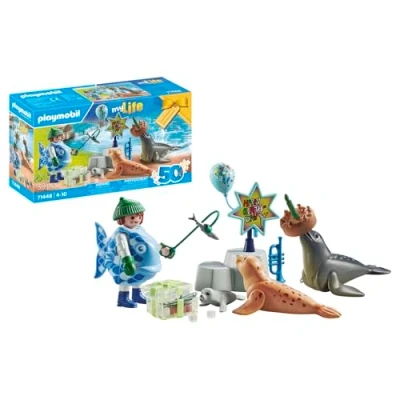 Playmobil 71448 My Life: Keeper with Animals, birthday party two seals and a baby seal, fun imaginative role play, artistic play sets suitable for children ages 4+