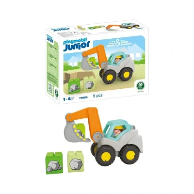 PLAYMOBIL 71684 JUNIOR: Shovel Excavator, including foldable cabin roof and stackable stones, sustainable toy made from plant based plastics, gifting toy, play sets suitable for children ages 1+
