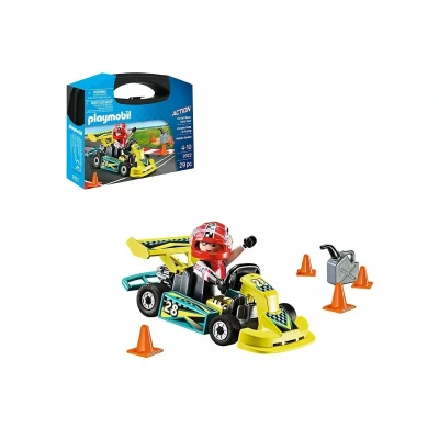 AmazonTake the thrill of the racetrack with you everywhere you go with the PLAYMOBIL 9322 Action Go-Kart Racer Carry Case. The set features a racer, a go-kart, petrol canister for filling up and traffic cones to mark your pit-stop area. All pieces fit into the carry case. Perfect for on-the-go fun! Features a go-kart Includes a racer With petrol canister and traffic cones All pieces fit into the carry case Play, store and carry away!, Manufacturer: Playmobil