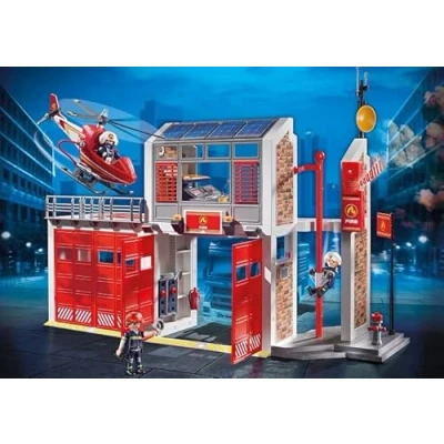 Fun with everyday heroes: Playmobil 9462 Fire Station with 3 figures, accessories and cool sound effects for accurate role-play Opening doors, helicopter with helipad, alarm sound and sliding pole, Offers space for 2 vehicles, Can be combined with the Fire Truck (9466 sold separately) Playset for children ages 5+, Ideal for children's hands due to age-appropriate size and easy to hold thanks to the rounded edges Can be used every day: instructions for setting up with parents, High quality and robust design, Clean the parts (without stickers) under running water without chemical agents Contents: 1x Playmobil City Action Fire Station, 181-piece playset with instructions: 1 fire station, 3 figures, 177 accessories (2 x AAA batteries not included), Material: plastic, LxWxH: 61x21x36 cm, 9462, Manufacturer: Playmobil