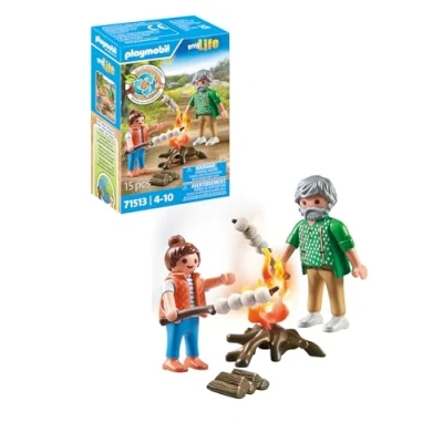 Lovingly designed PLAYMOBIL playset with two PLAYMOBIL figures, a campfire, two wooden sticks, and six marshmallows. The marshmallows can be placed on and removed from the branches. All sets in the PLAYMOBIL Tiny House play world consist of more than 80% recycled and bio-based materials. Toy for children ages 4+: Fits perfectly in children's hands due to age-appropriate size pieces, Easy to hold thanks to its rounded edges Everyday use: instructions for assembly (with parents), High quality and robust design, To clean the parts (not including stickers), place pieces under running water containing no chemical agents, Manufacturer: Playmobil