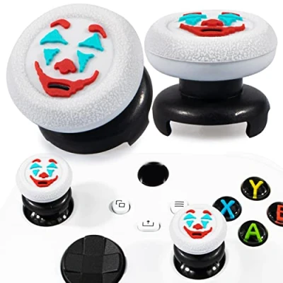 Playrealm FPS Thumbstick Extender &Texture Rubber Silicone Grip Cover 2 Sets for Xbox Series X/S & One Controller(Joker White)