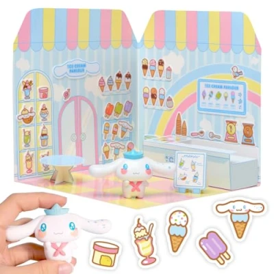 Playset Cinnamoroll Ice Cream Parlour 40+ Stickers and 6cm Figurine 3D House Restaurant Reusable Kawaii Foodcourt Sticker Comansi