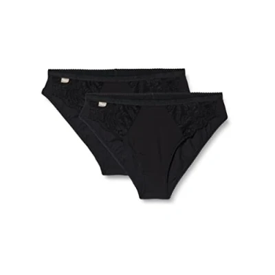 Playtex Pack of full briefs Cotton & Lace Women x2, Black, XL