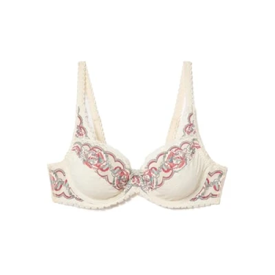 Specific cuts and construction for an excellent uplift and a natural rounded breast shape Elegant floral recycled lace, scalloped edges and satiny details for a gorgeous feminine look Full Cup Bra features underarm comfort cushions to prevent the underwired digging in Added support from D cups, sides,back and straps