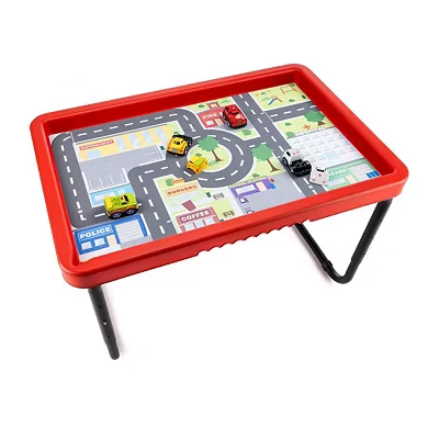 PlayTray Activity Table with Play Mat Set, Kids Sensory Tray, City and Race Theme Messy Tray