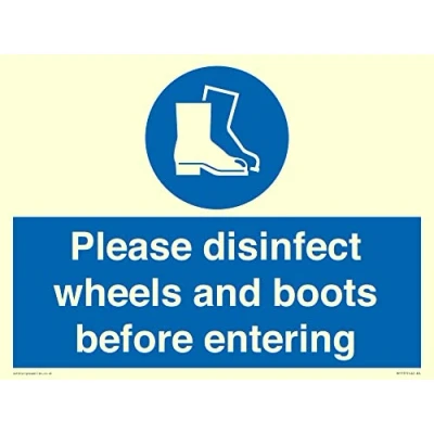 Please disinfect wheels and boots before entering Sign 400x300mm A3L