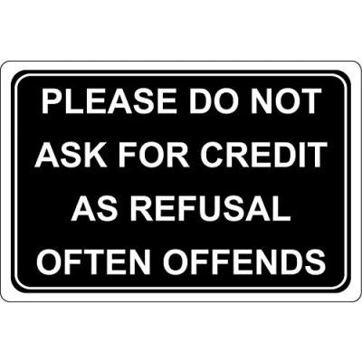 Please do not ask for credit as refusal often offends sign Self adhesive sticker 200mm x 150mm