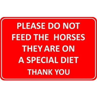 Please do not feed the horses they are on a special diet sign 1.2mm Rigid plastic 200mm x 150mm Digitally printed for extra durability Drill and screw in position or use double sided tape to mount onto suitable surface., Manufacturer: KPCM Display ltd