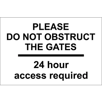 Please DO NOT OBSTRUCT The GATE Sign 24 Hour Access Required 1.2mm Rigid Plastic 300mm x 200mm
