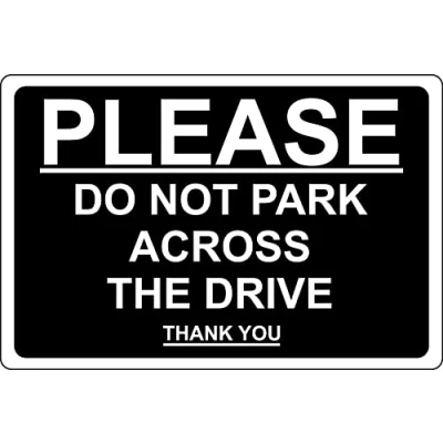 Please do not park across the drive thank you driveway sign (B) 1mm Plastic sign Digitally printed for extra durability Drill and screw in position or use double sided tape to mount onto suitable surface.