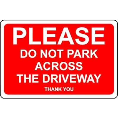 Please do not park across the driveway thank you safety sign 1mm Plastic sign Digitally printed and laminated for extra durability Drill and screw in position or use double sided tape to mount onto suitable surface, Manufacturer: KPCM Display ltd