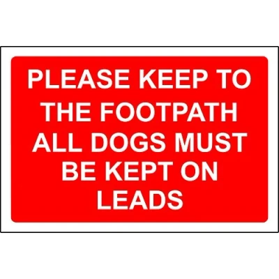 PLEASE KEEP TO THE FOOTPATH DOGS MUST BE KEPT ON A LEAD sign 3mm Aluminium Composite ultra hi durability 300mm x 200mm