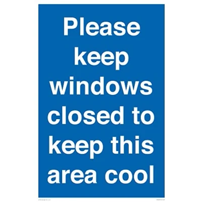 No Symbol This sign is made from vinyl / sticker Air Release vinyl makes it easy to stick to flat, clean surfaces without bubbles. Not for rough, plastic or dusty surfaces. A2 portrait Sign Text: Please keep windows closed to keep this area cool