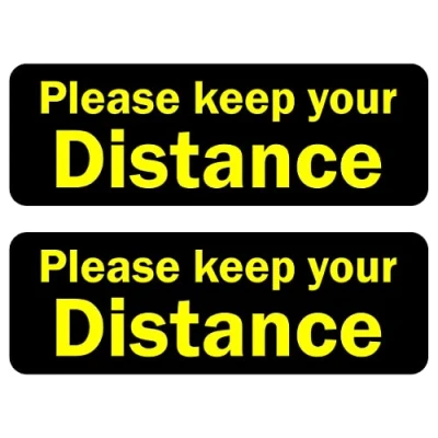 Please keep your distance sign Self adhesive sticker 200mm x 75mm (Pack of 2 stickers) Digitally printed and laminated for extra durability Remove backing film and apply to dry, smooth, oil free surface.
