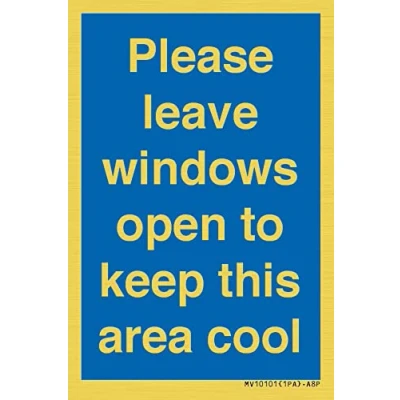 Please leave windows open to keep this area cool Sign 50x75mm A8P