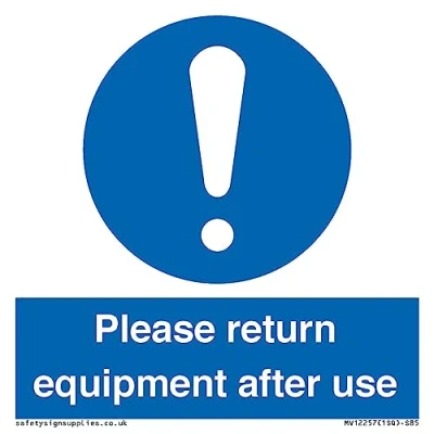 Please Return Equipment After Use Sign 85x85mm S85