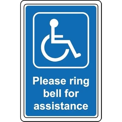 Please ring the bell for assistance disabled safety sign Self adhesive sticker Digitally printed and laminated for extra durability Remove backing film and apply to dry smooth oil free surface, Manufacturer: KPCM Display ltd