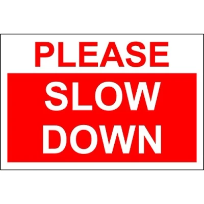 Please slow down warning Sign 1.2mm rigid plastic 200mm x 300mm
