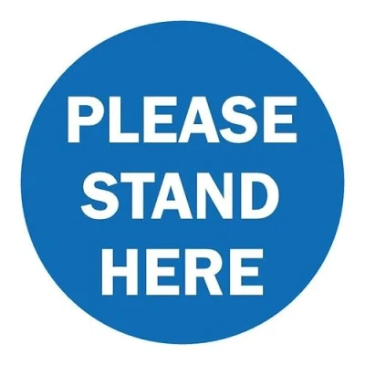 Please stand here floor sticker. Self adhesive floor graphic. Fitted with an anti slip heavy duty over-laminate to prevent slips. All signs come with a 5-year warranty. All our signs are UV resistant meaning they will not fade in sunlight.