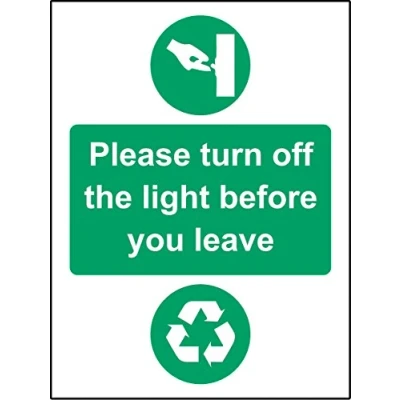 Please turn off the light before you leave Safety sign Self adhesive sticker 150mm x 100mm Remove backing film and apply to dry, smooth, oil free surface. Digitally printed and laminated for extra durability, Manufacturer: KPCM Display