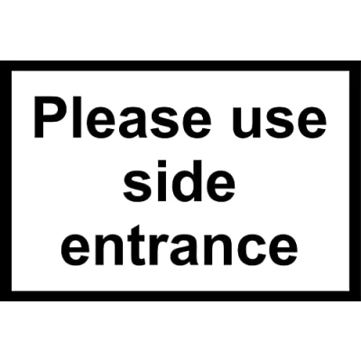 Please use side entrance sign 1mm Plastic (300mm x 200mm)