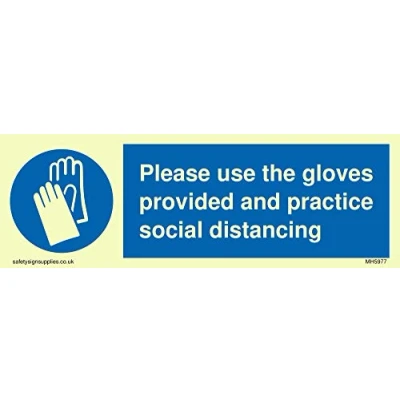 Please use the gloves provided and practice social distancing sign Plastic Semi rigid Photoluminescent