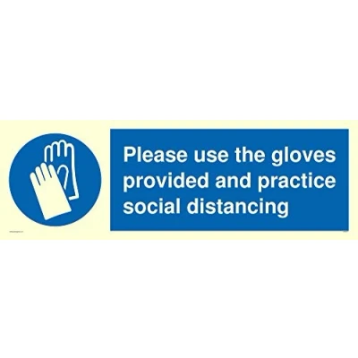 Please use the gloves provided and practice social distancing sign Vinyl Photoluminescent sticker
