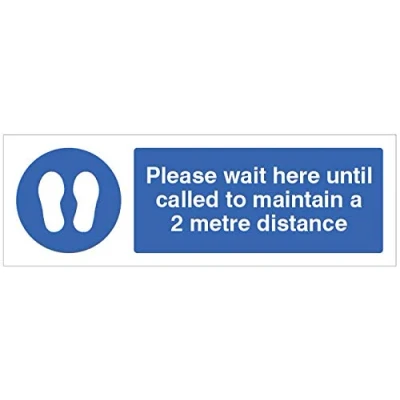 Please wait here, maintain a 2 metre distance floor graphic 600x200mm