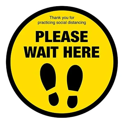Please Wait Here with Symbol Social Distancing Floor Graphic 200mm