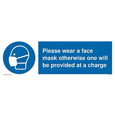 Please wear a face mask otherwise one will be provided at charge Sign 300x100mm L31