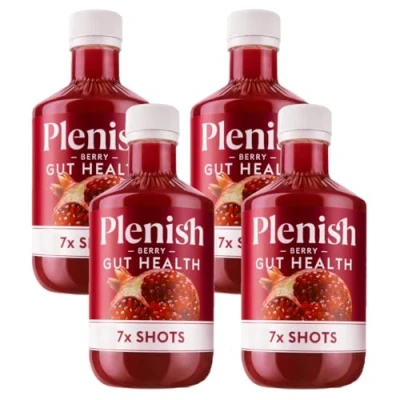 Plenish Berry Gut Health Shots Multipack 4 x 420ml Dosing Bottles 28 100% Natural, Vegan & Gluten Free No Added Sugar, Additives, Preservatives Perfect Pick Me Up