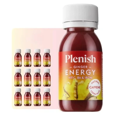 Plenish Ginger Energy Shots 12 x 60ml 20mg Caffeine Per Shot Contains Vitamins B6, C & Iron 100% Natural, Vegan Gluten Free No Added Sugar, Additives, Preservatives