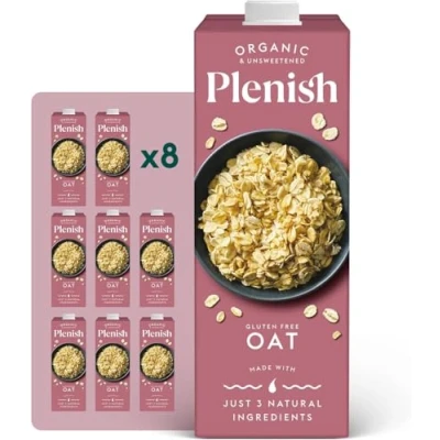 Plenish Organic Unsweetened Oat Milk 1L (Pack of 8)